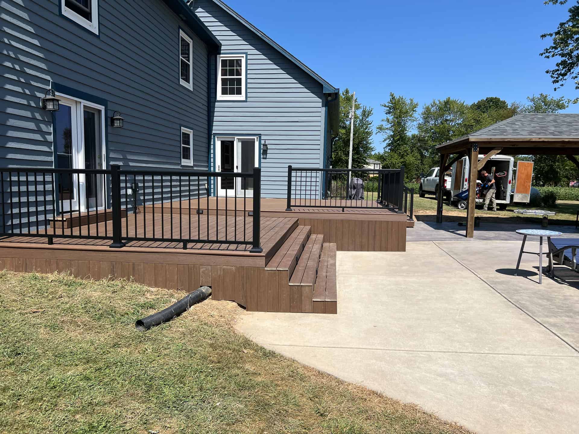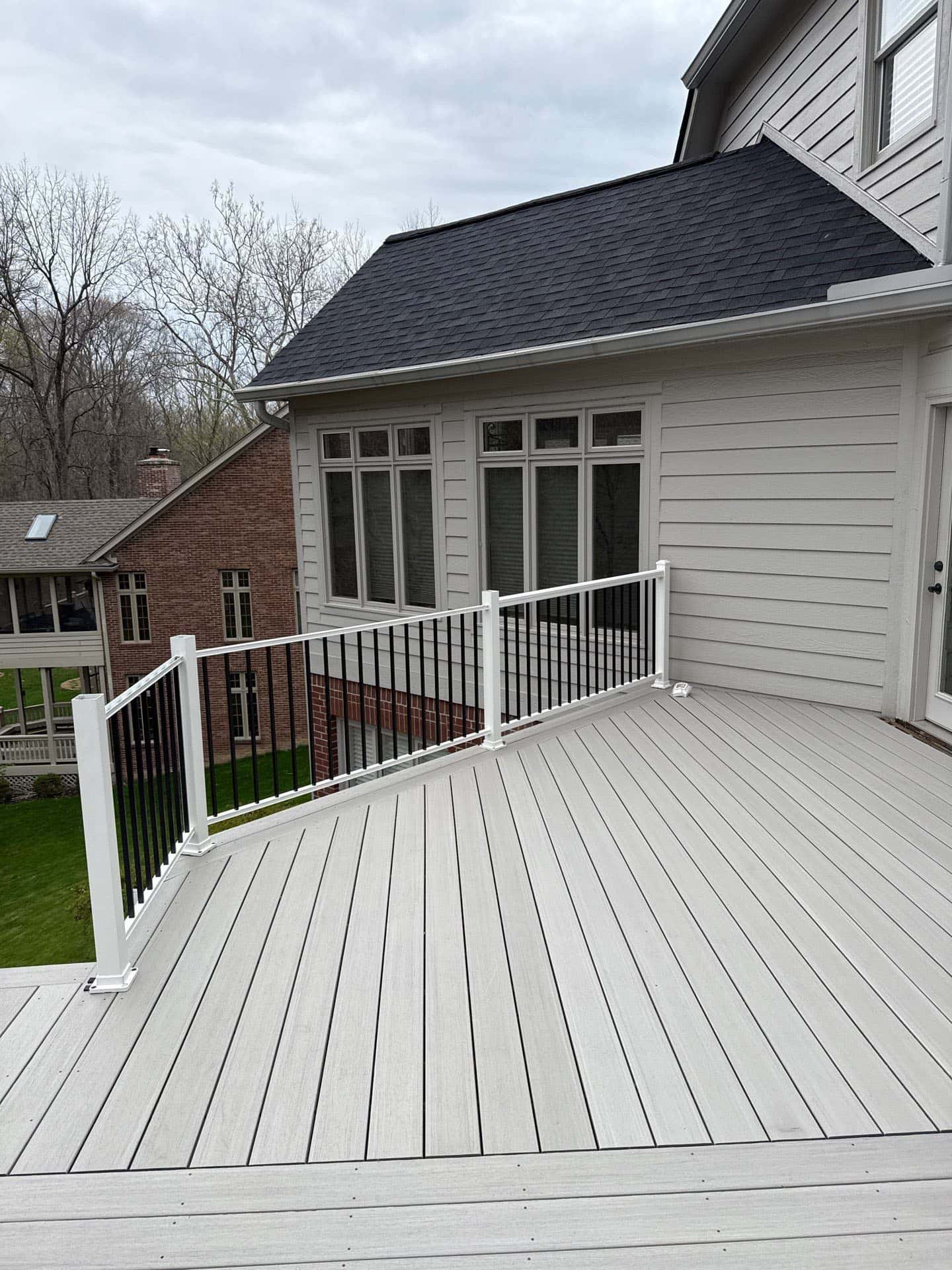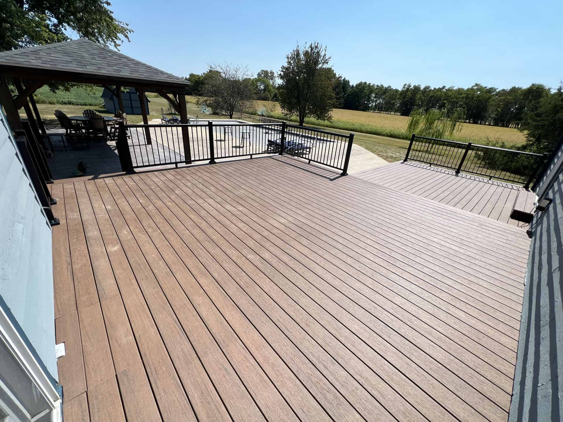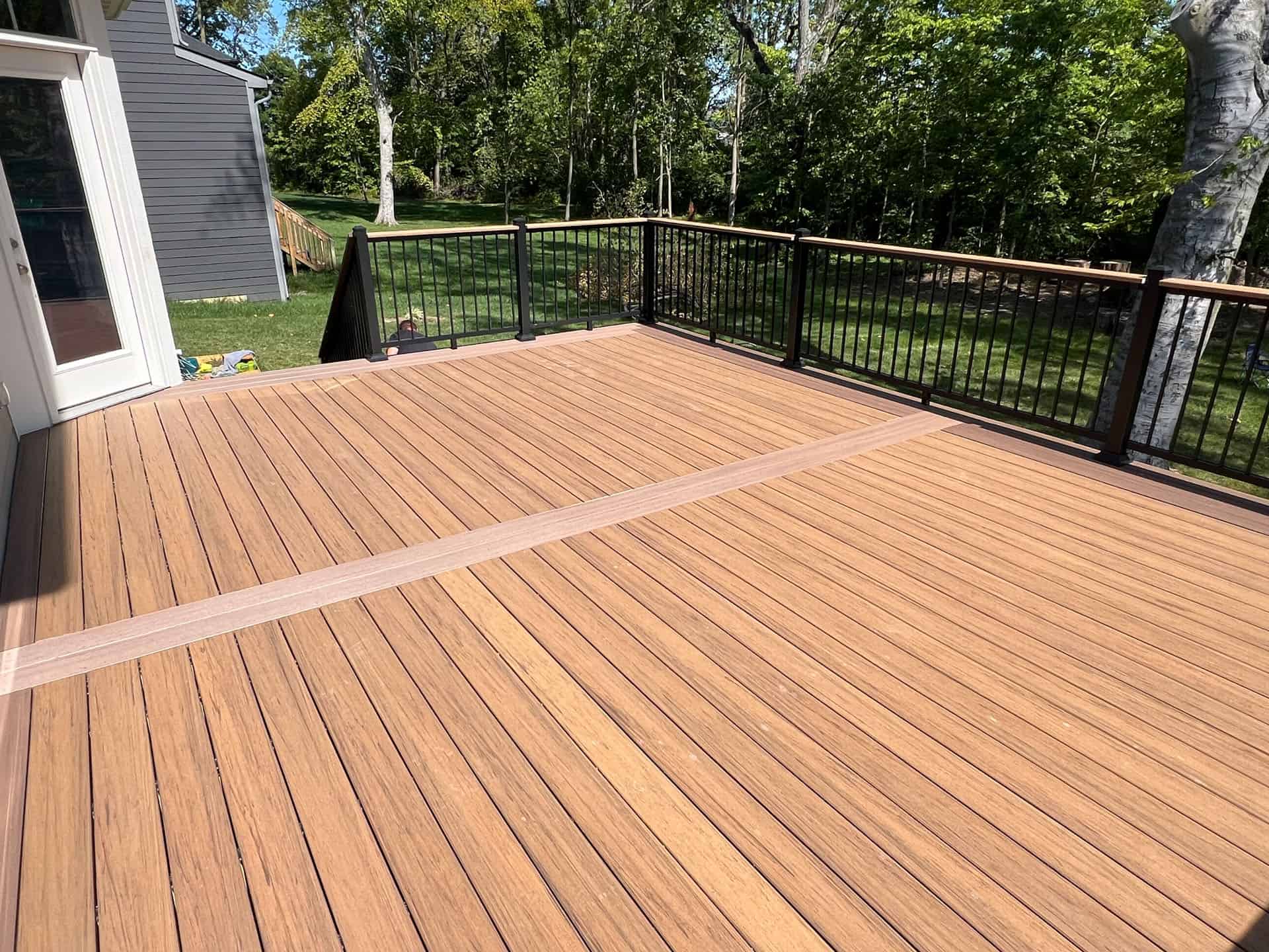 Wood, composite, and PVC decking options selected for freeze–thaw performance, sun exposure, and maintenance expectations.